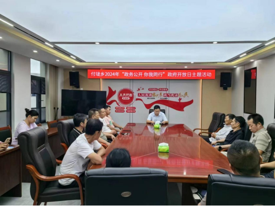为进一步加强政民互动交流,保障人民群众的知情权、表达权、参与权和监督权,搭建好政府与群众的沟通桥梁,付垅乡开展了以“政务公开,你我同行”为主题的政府开放日活动。活动邀请各村(场)人大代表、群众代表及乡机关干部,共20余人参加。