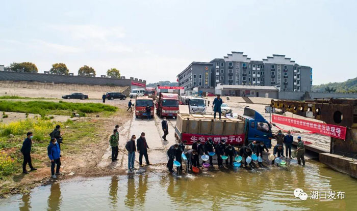 3月19日,县农业农村局牵头在鄱阳湖西门塘水域开展渔业增殖放流活动,今年首批75万尾10厘米以上优质四大家鱼鱼苗被投放鄱阳湖和长江水域。