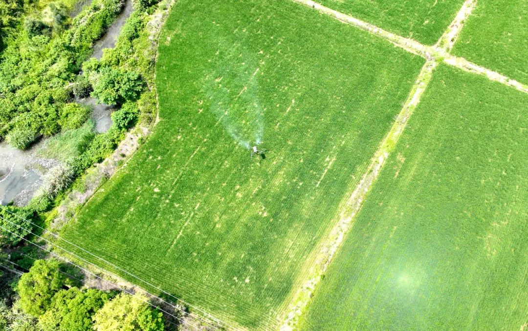 无人机轻盈地掠过翠绿的稻浪,精准地将药剂洒向目标区域。这不仅是一次高效的病虫害防治行动,也是湖口拥抱现代农业科技、保障粮食安全生产的生动缩影,更是为湖口粮食丰收筑牢科技防线。