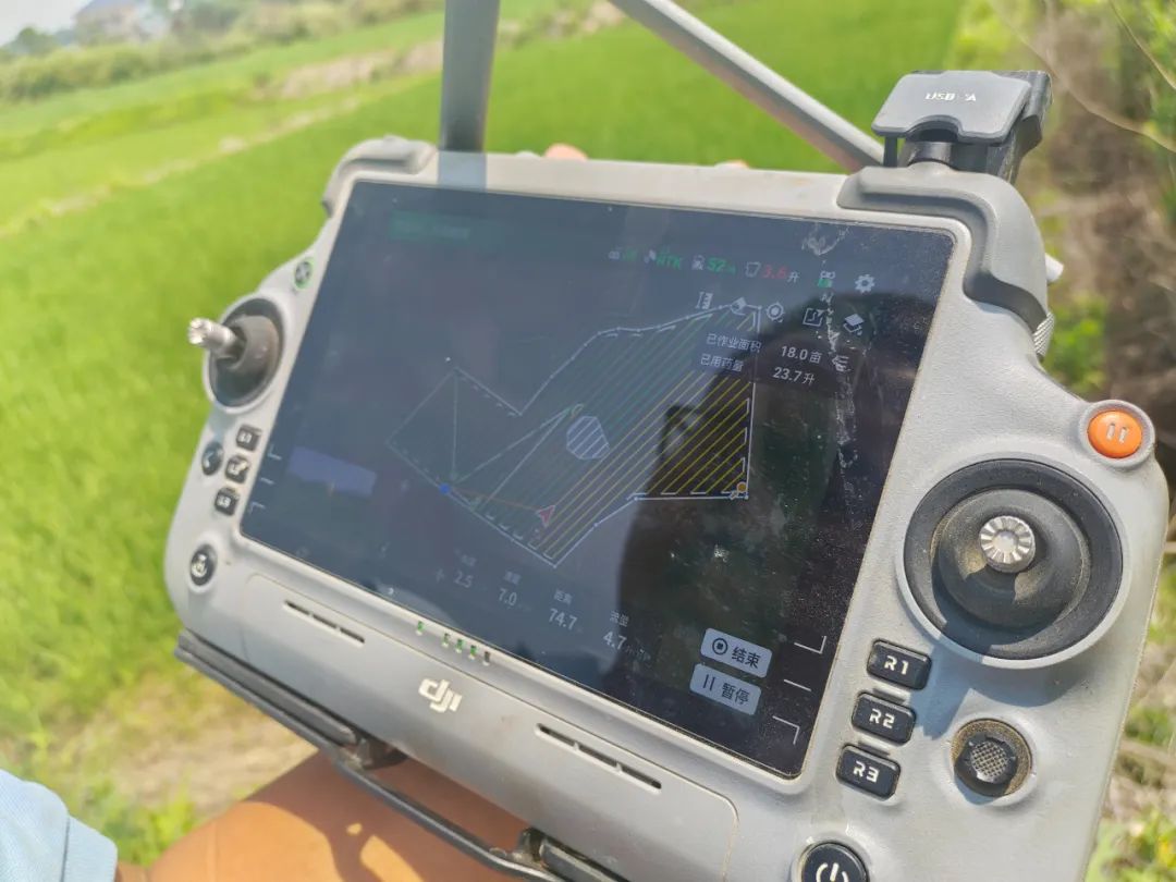“现在做的就是早稻‘二化螟’的防治,窗口期非常重要。”杨浩一边监控着无人机的飞行轨迹,一边介绍道,“我们的策略是科学用药,在虫害初发阶段就用更少的药量进行精准防治,力求‘一次性解决掉’,而不是等到虫害爆发、水稻受损严重了再来补救。这既能保证防治效果,也减少了农药残留,更环保。”