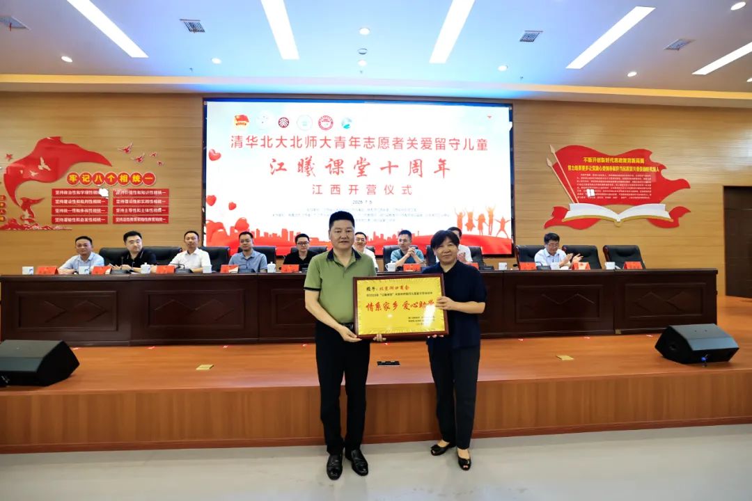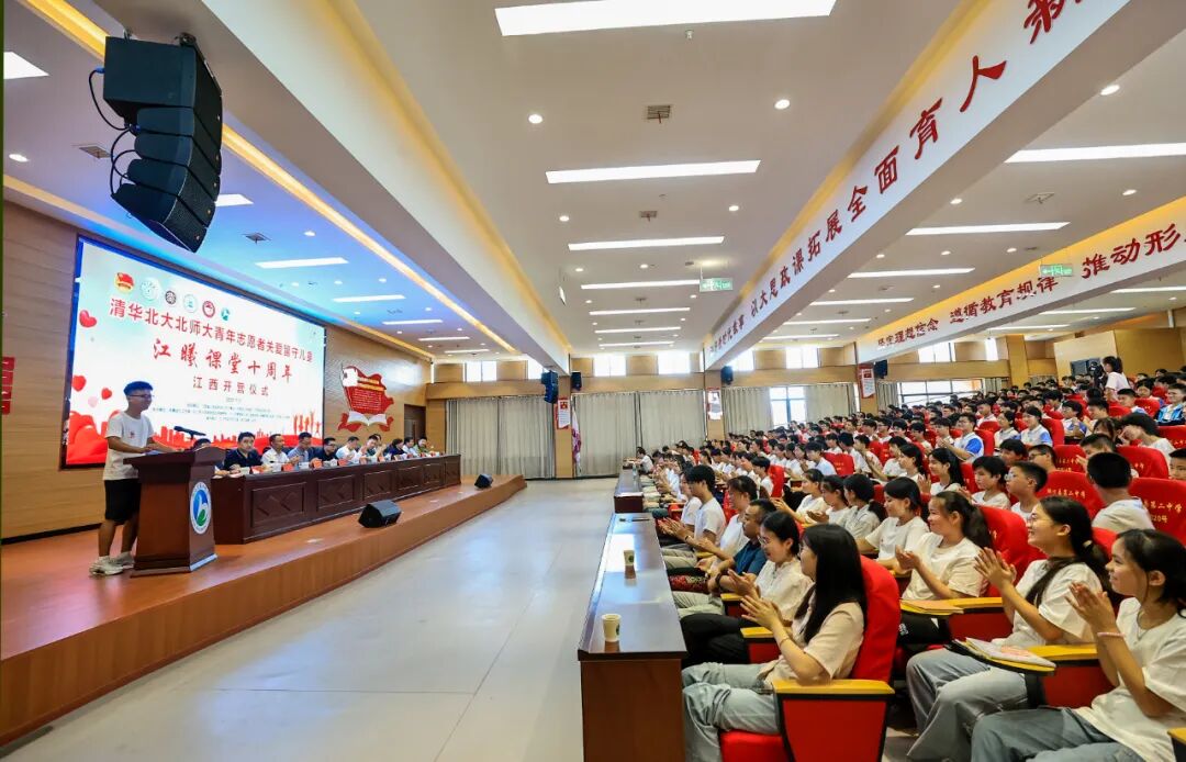 7月5日,清华、北大、北师大志愿者关爱留守儿童“江曦课堂十周年” 江西开营仪式暨湖口站开营仪式在湖口二中启动。省驻京办党组成员、副主任欧阳添出席并宣布开营。团省委青年发展部部长葛李保,县委常委许健,省驻京团工委书记左易光磊,团市委副书记杨洋,副县长沈昭,市驻京团工委书记刘盛松,县教体局党委书记、局长张志伟等领导以及大学生志愿者和湖口二中师生参加开营仪式。