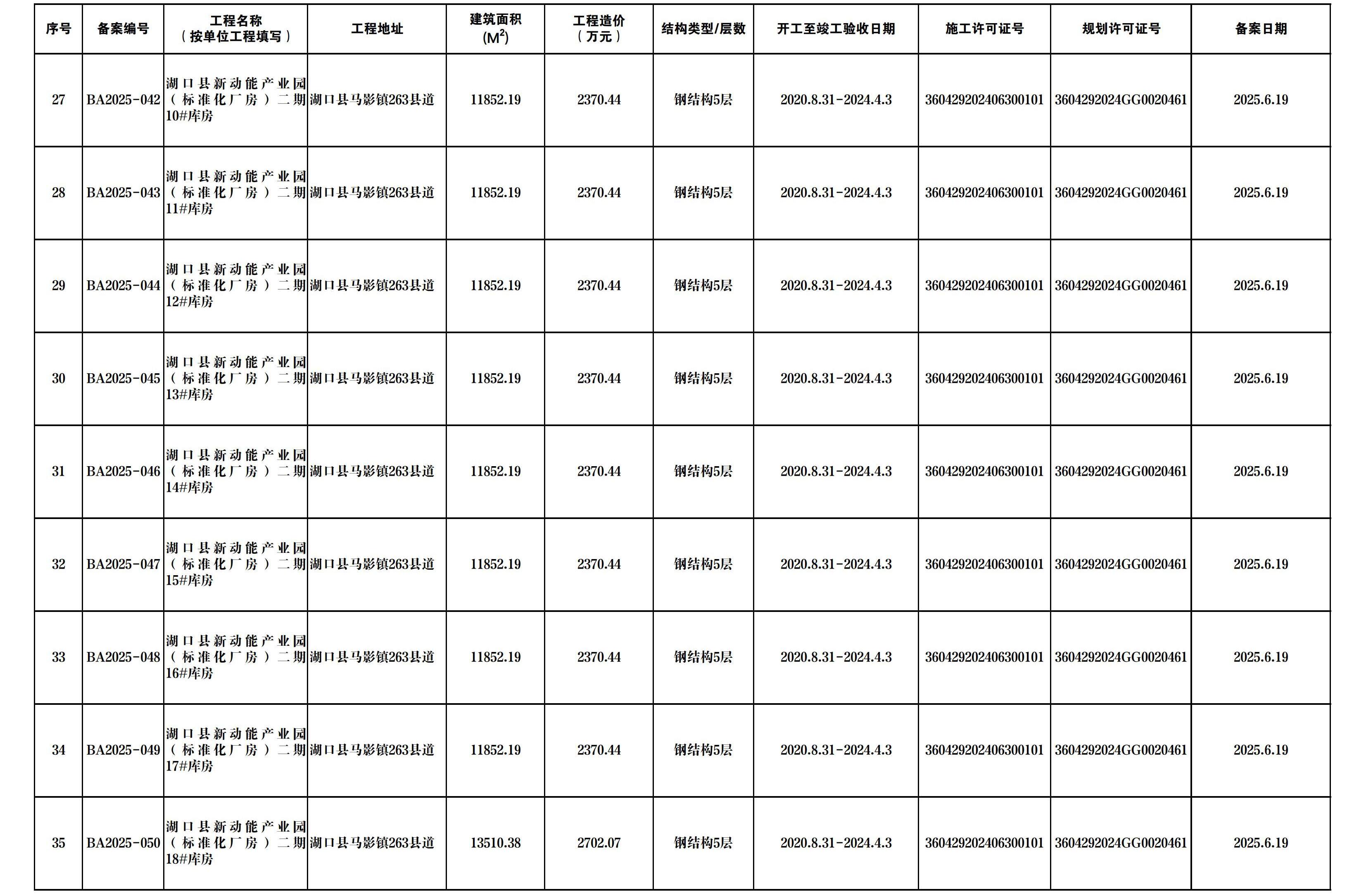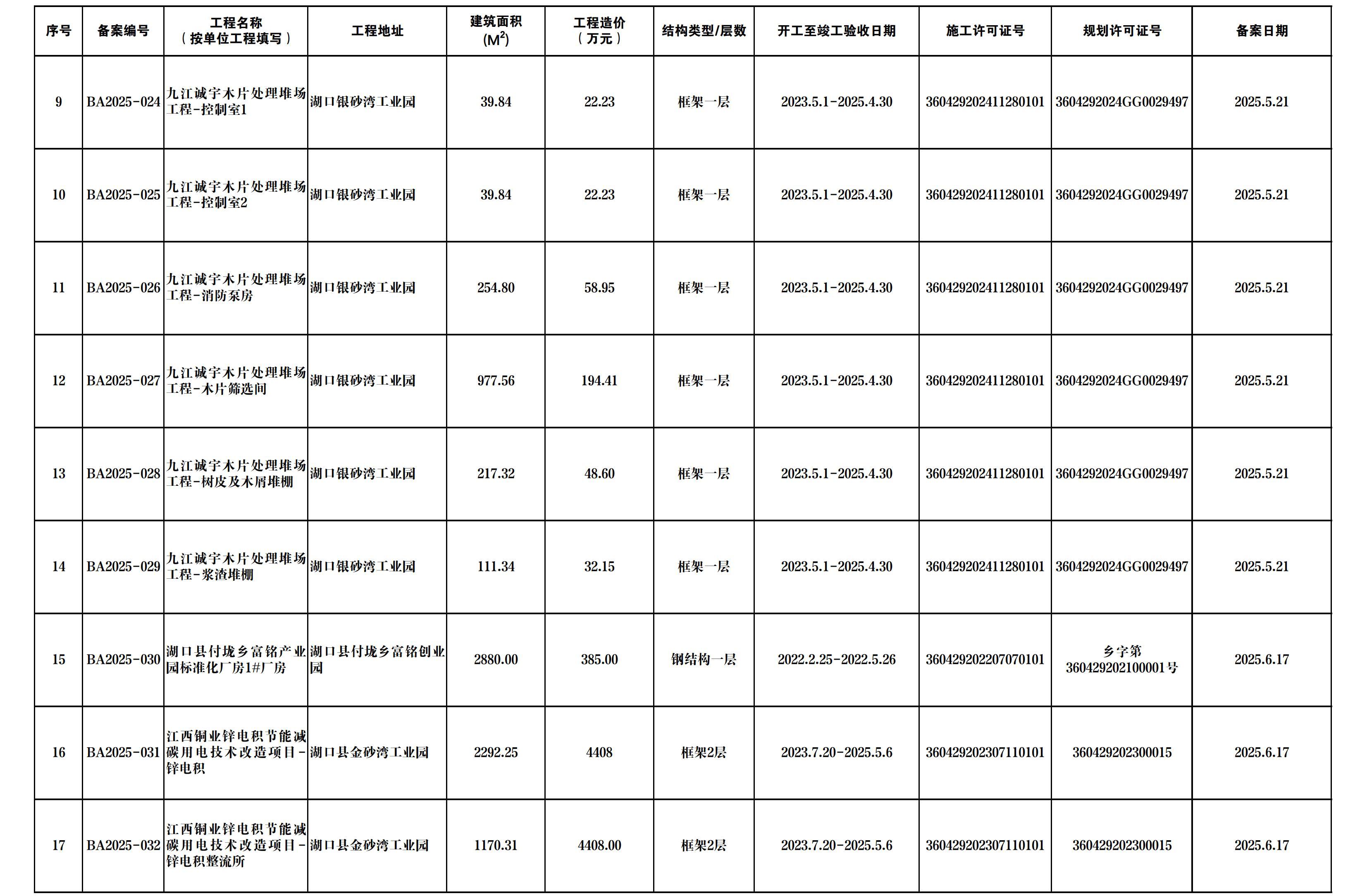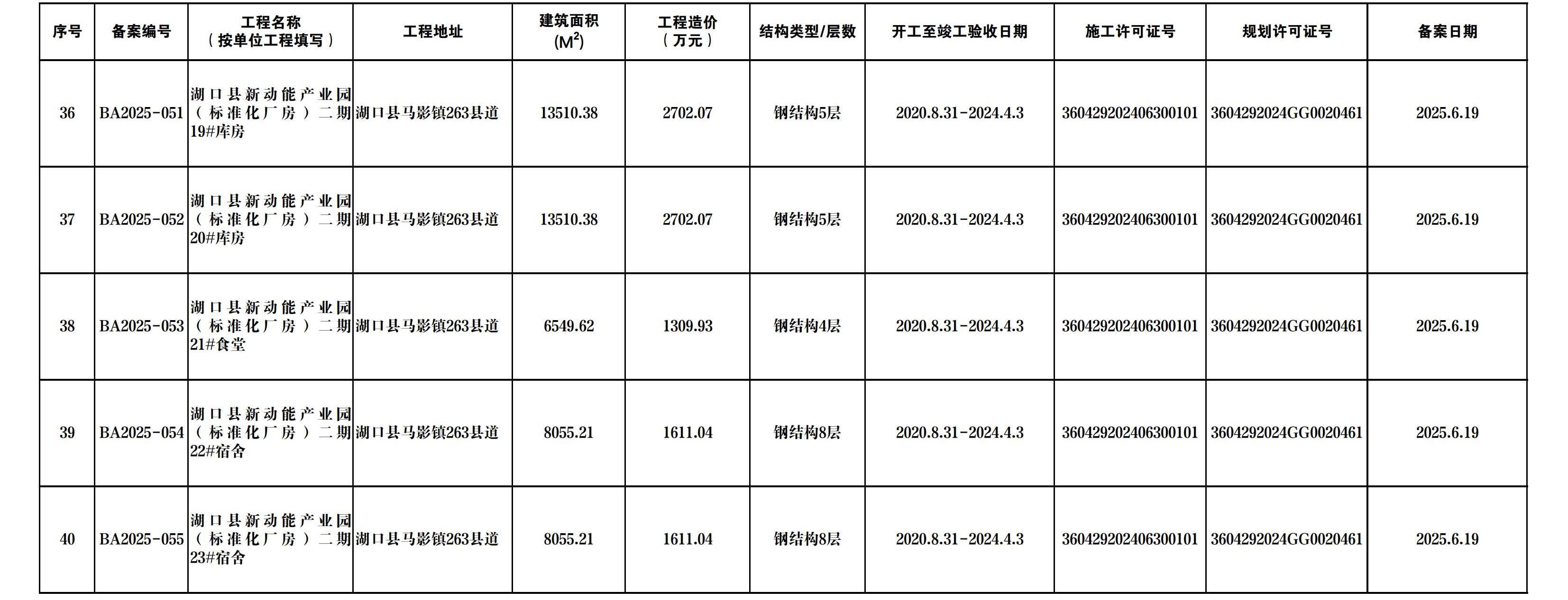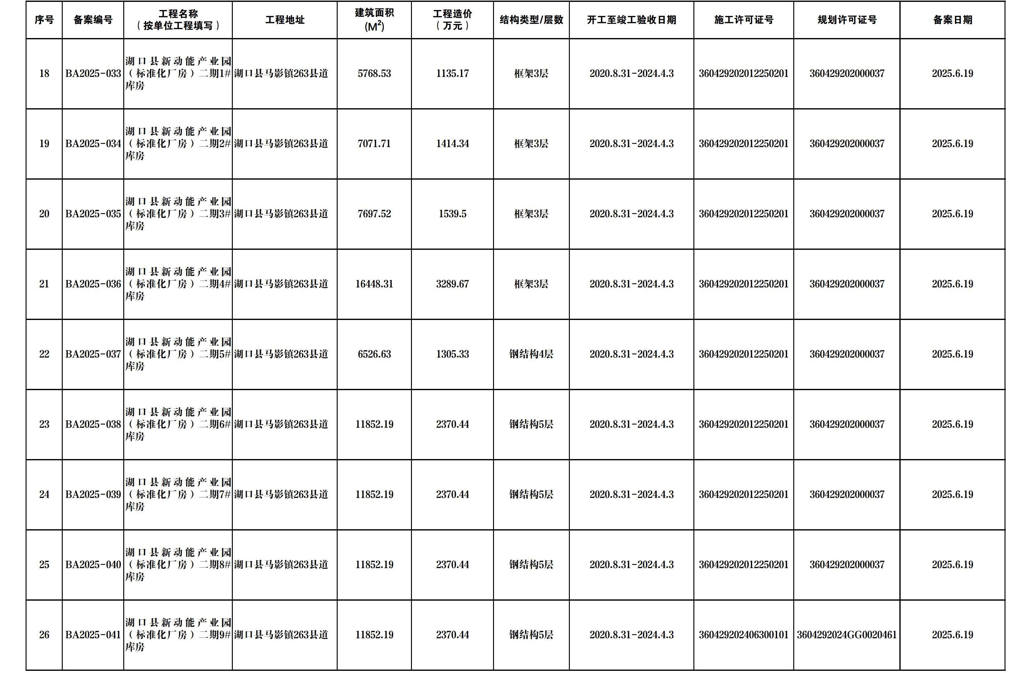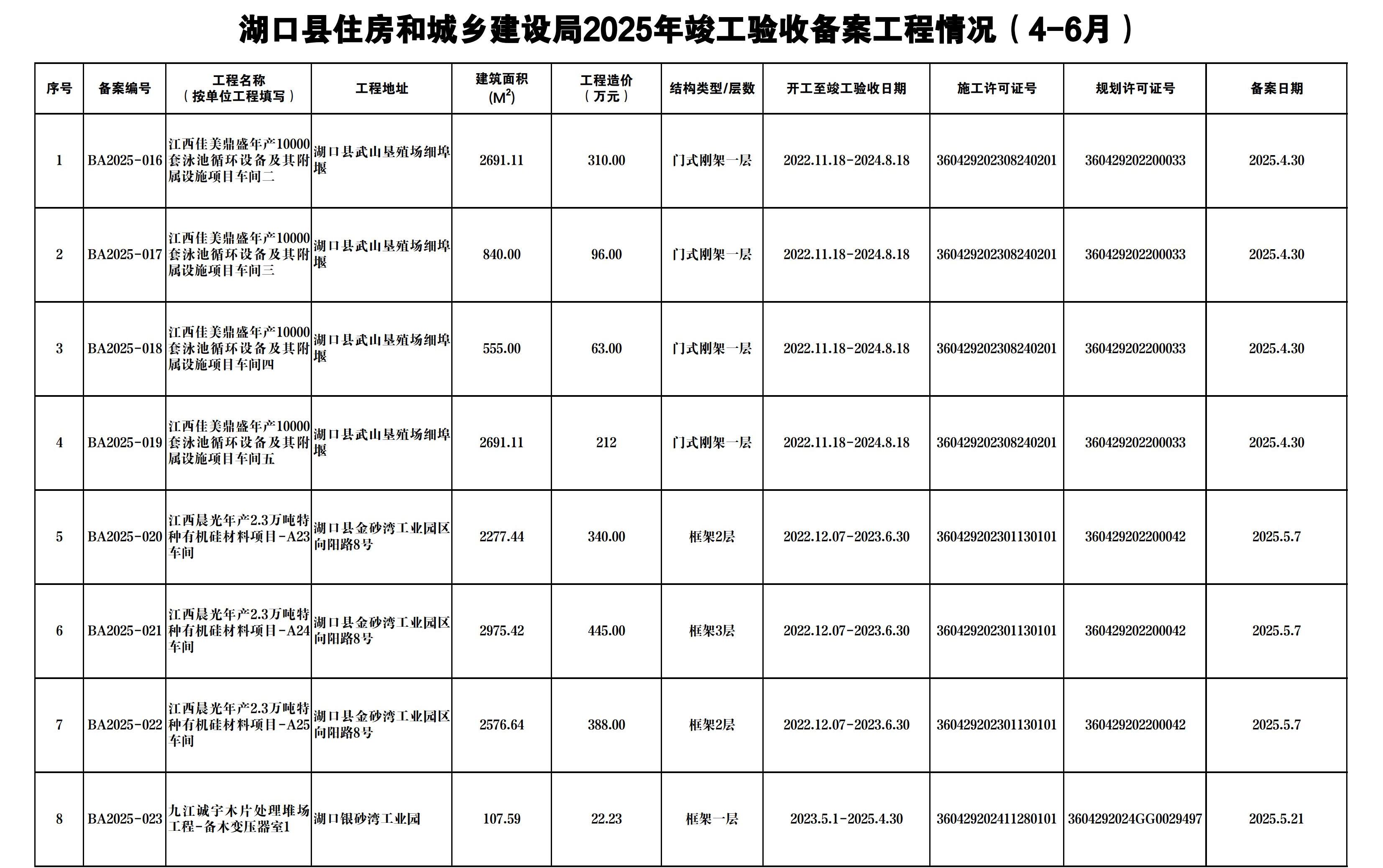 湖口县住房和城乡建设局2025年竣工验收备案工程情况(4-6月)