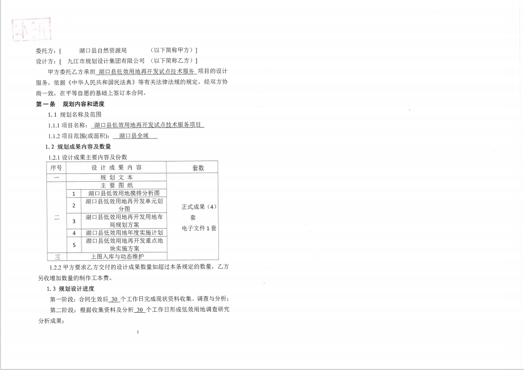 湖口县低效用地再开发试点技术服务项目