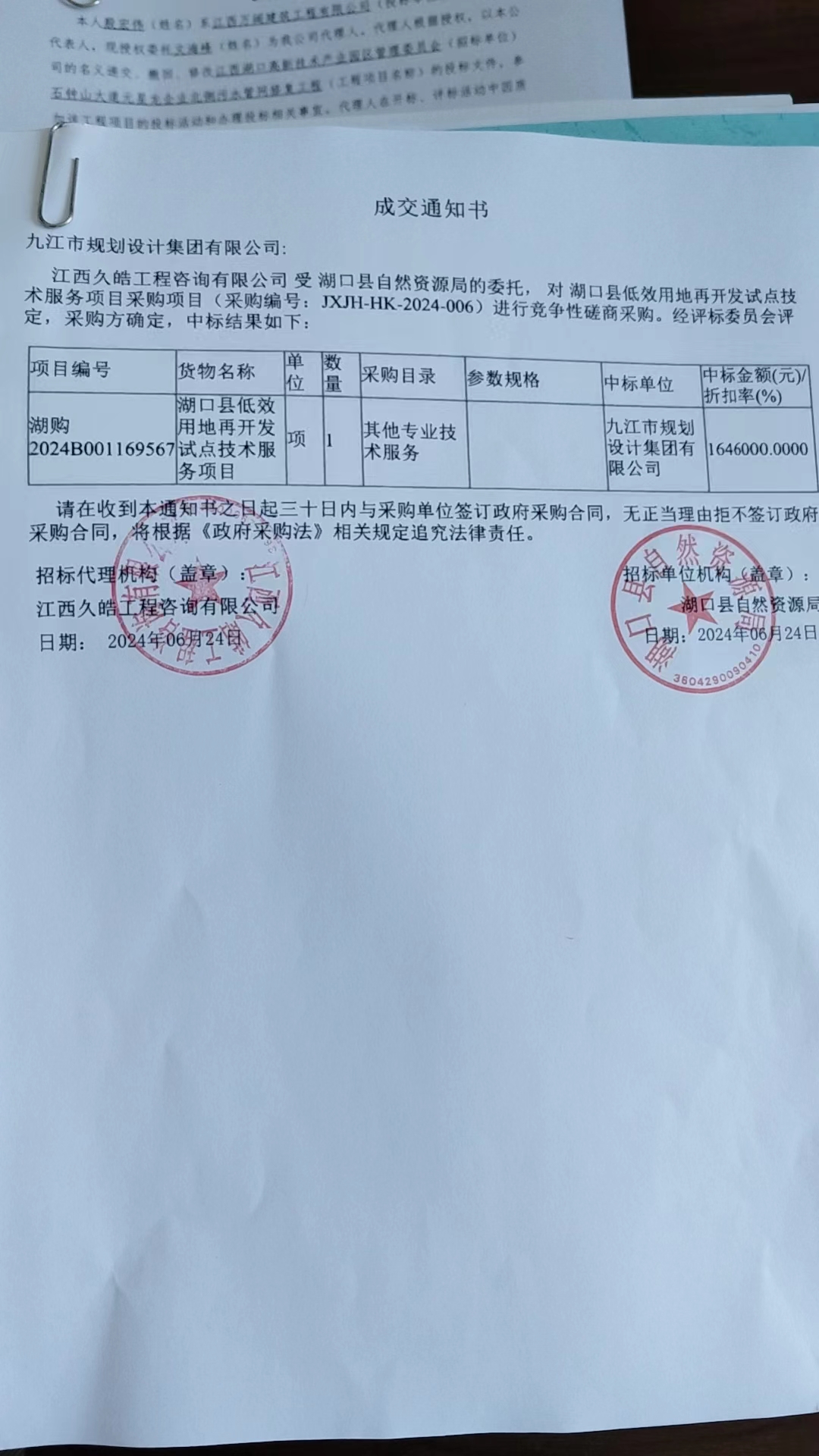 | 湖口县低效用地再开发试点技术服务项目 | 响应招标文件 | 响应招标文件 | 响应招标文件 | 响应招标文件 |