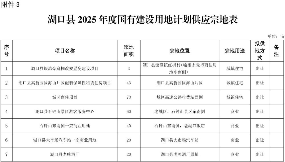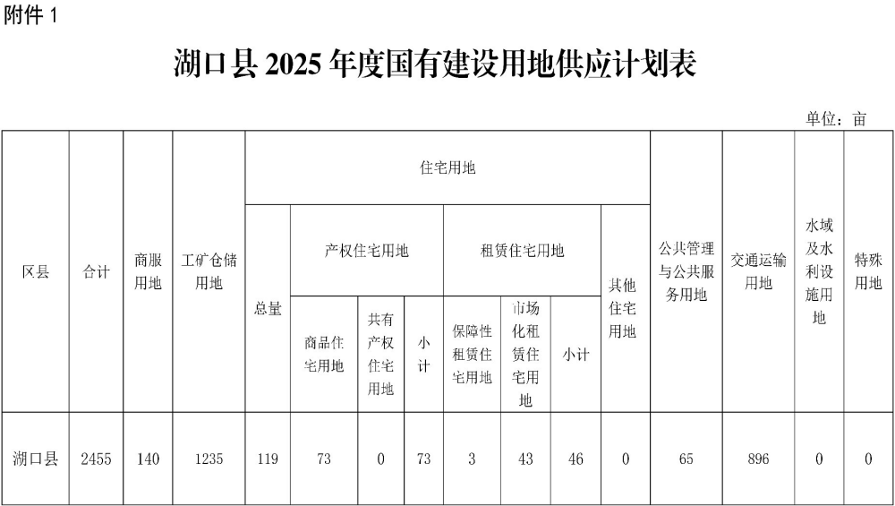 附件:1.湖口县2025年度国有建设用地供应计划表