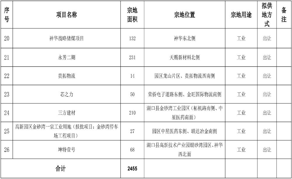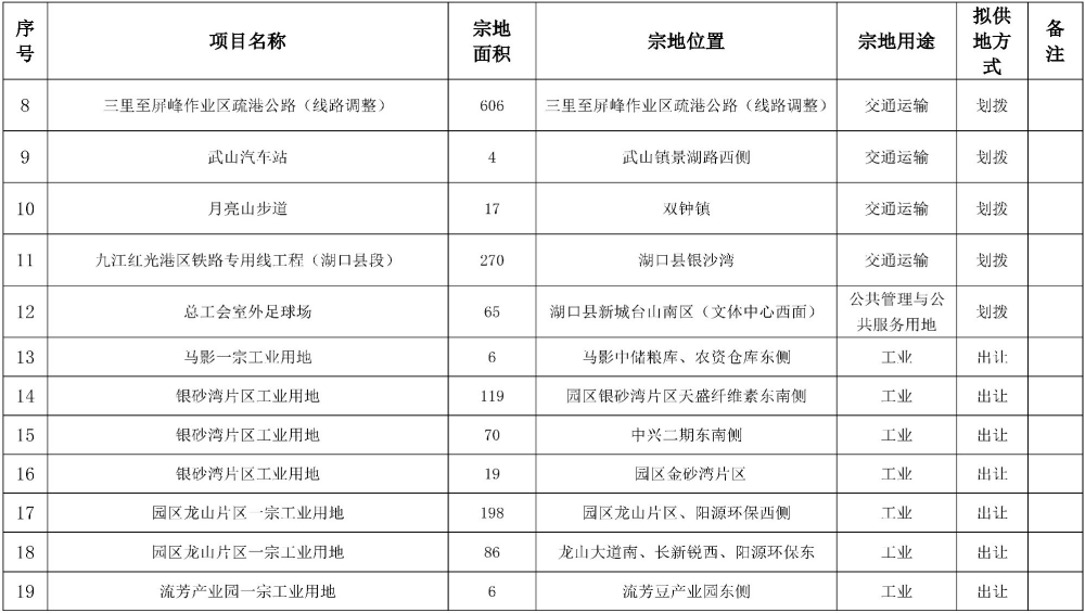 3.湖口县2025年度国有建设用地计划供应宗地表