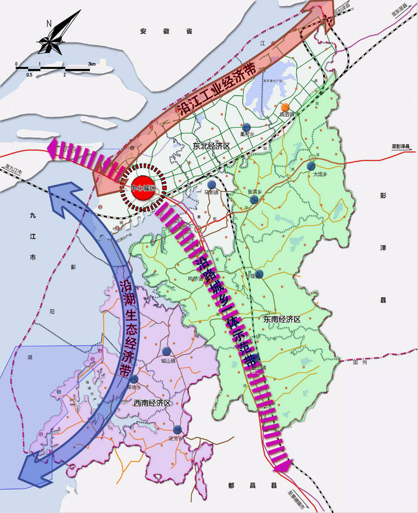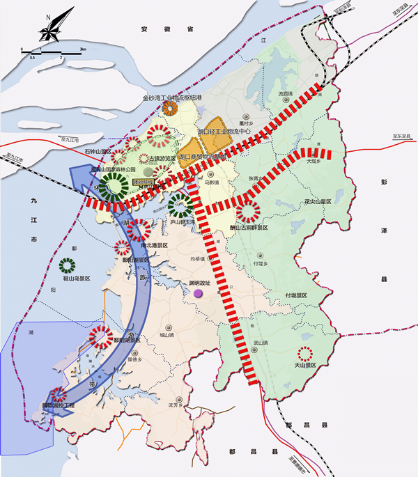高举中国特色社会主义伟大旗帜,以邓小平理论、“三个代表”重要思想、科学发展观为指导,深入贯彻习近平总书记系列重要讲话精神,全面落实中央“五大发展”理念、省委“十六字”方针和市委“四大战略”、“八大行动”要求,按照“打造新型工业,推进城乡一体,加快绿色崛起,率先全面小康”的发展战略,聚焦“一核三带”,大力实施“八大举措”,奋力建设“五个湖口”,着力打造全省生态文明先行示范县、长江经济带新型工业强县、全国知名山江湖文化旅游名城。