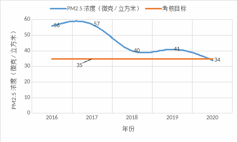 生态环境质量持续改善。“十三五”时期,全县环境质量为全县经济社会发展提供了良好支撑。2020年,全县环境空气质量达到国家二级标准,城区环境空气质量优良天数为312天,环境空气质量优良天数比例为85.5%,PM2.5浓度为34微克/立方米。湖口县2016-2020年PM2.5平均浓度呈现逐步向好的趋势,完成上级考核目标。