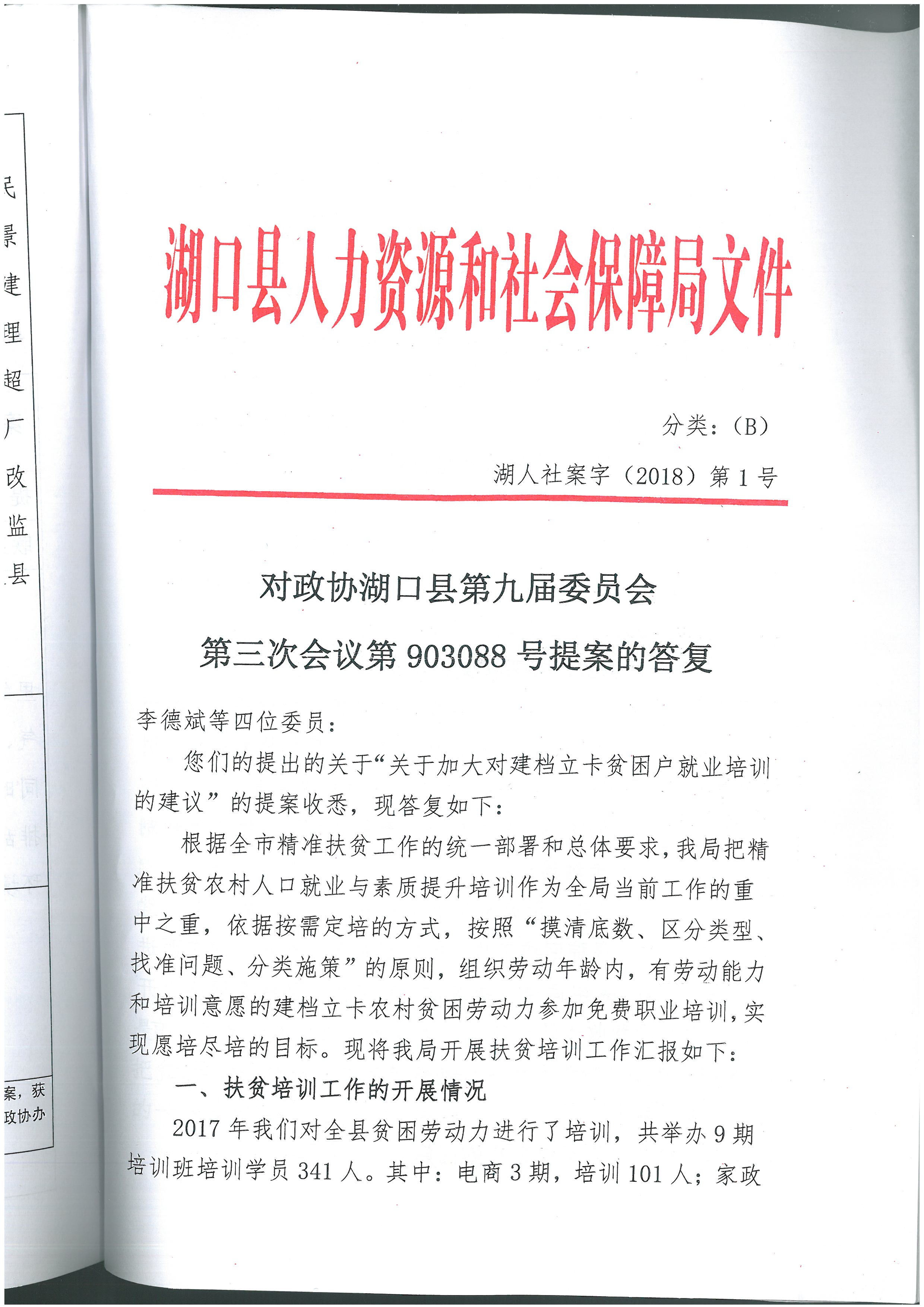 对政协湖口县第九届委员会第三次会议第903088号提案的答复