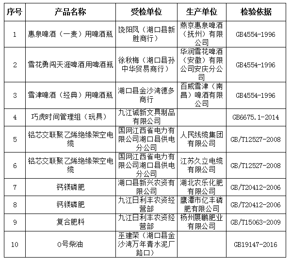 湖口县市场监督管理局产品质量监督抽查结果信息公示(2020年11月第一批)