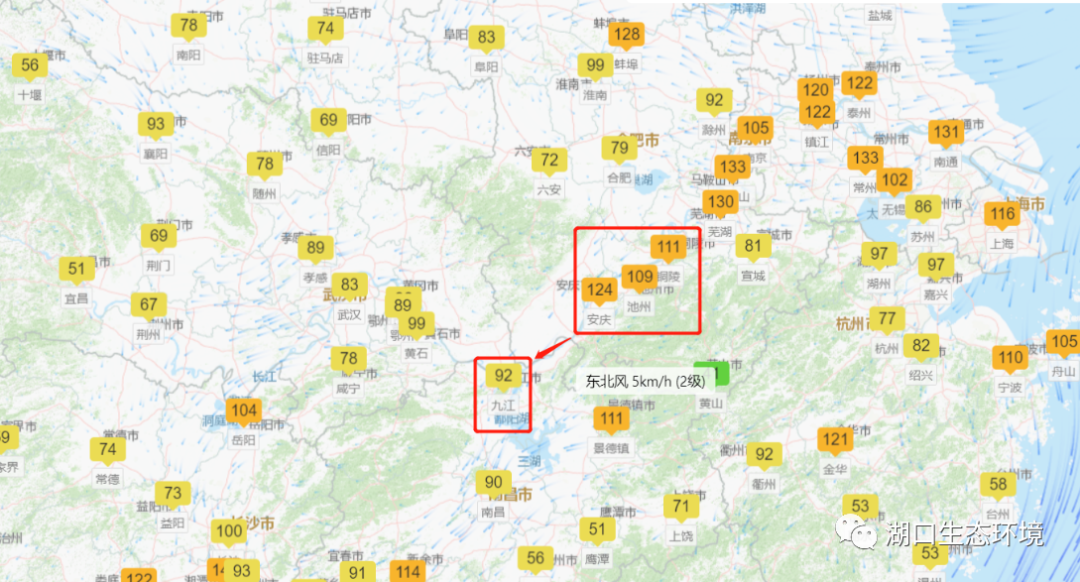 2021年12月21日,空气质量指数AQI为87,空气质量指数类别为良。PM2.5日均值64μg/m3,PM10日均值90μg/m3,臭氧8小时滑动平均最大值为62μg/m3。2021年12月1日至2021年12月21日,PM2.5月累计73μg/m3,PM10月累计104μg/m3,优良天数13天,轻度污染5天,中度污染3天。2021年1月1日至2021年12月21日,PM2.5年累计30μg/m3(同比2020年改善9.09%),在九江市排名第10,江西省排名第90;PM10年累计54μg/m3(同比2020年改善3.57%),在九江市排名第11,江西省排名第89;有效天数355天,优良天数316天,优良天数比例89.01%(同比2020年上升1.69个百分点)。二、今日空气质量预测