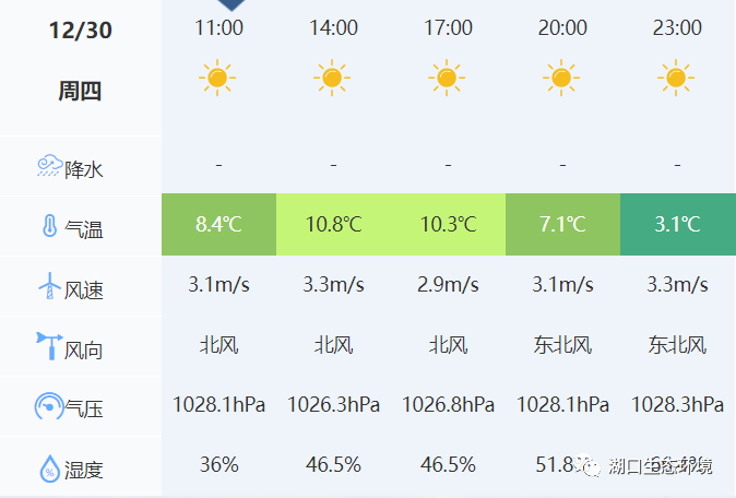 今日天气晴,温度1℃~11℃,湿度36%~84%(中央气象台预测)。空气质量污染级别为良,AQI处于70~98之间,首要污染物为PM2.5。我县今日以北风为主,夜间转东北风,风速0~3.3m/s,为二级风,扩散条件较差,无明显区域传输,九江市空气质量以良为主。截至8时,我县PM2.5累计浓度为77.2μg/m3,今日若保良,PM2.5小时浓度均值余量73.8μg/m3(即后续PM2.5 小时浓度均值不超过73.8μg/m3即可保良),保良压力中等。(注:预报具有一定的不确定性,具体形势有待进一步跟踪研判)