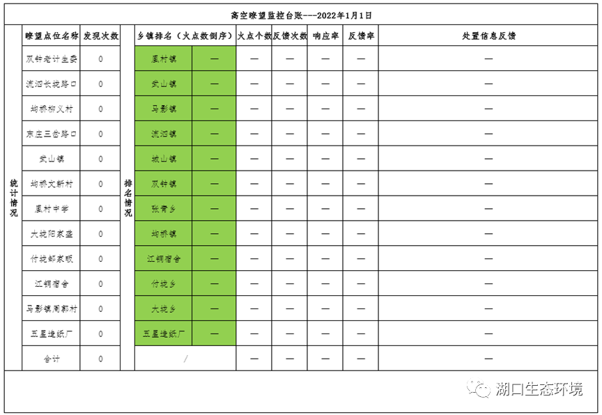 2022年1月1日湖口县高空瞭望火点发现及反馈情况如表1所示(截止反馈时间为昨日22点)。昨日未发现火点。