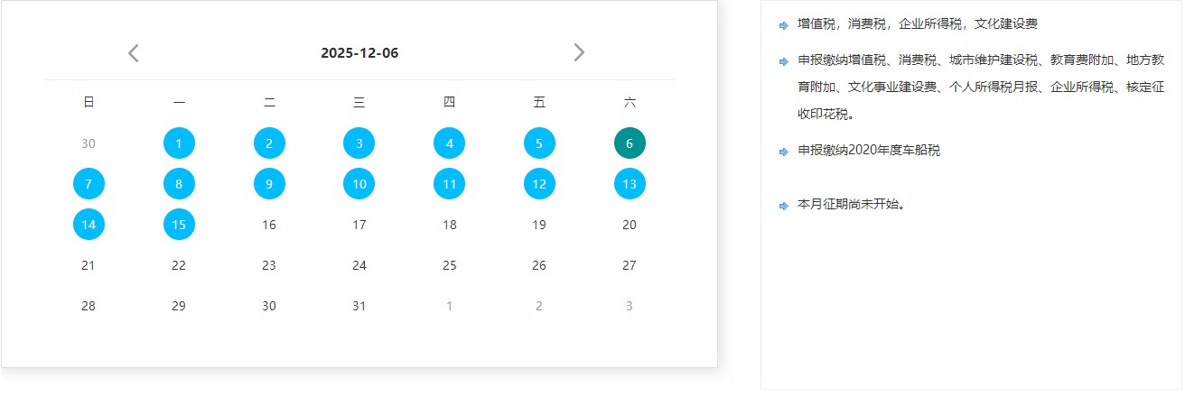 2025年12月办税日历