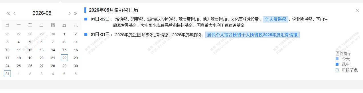 2026年5月办税日历