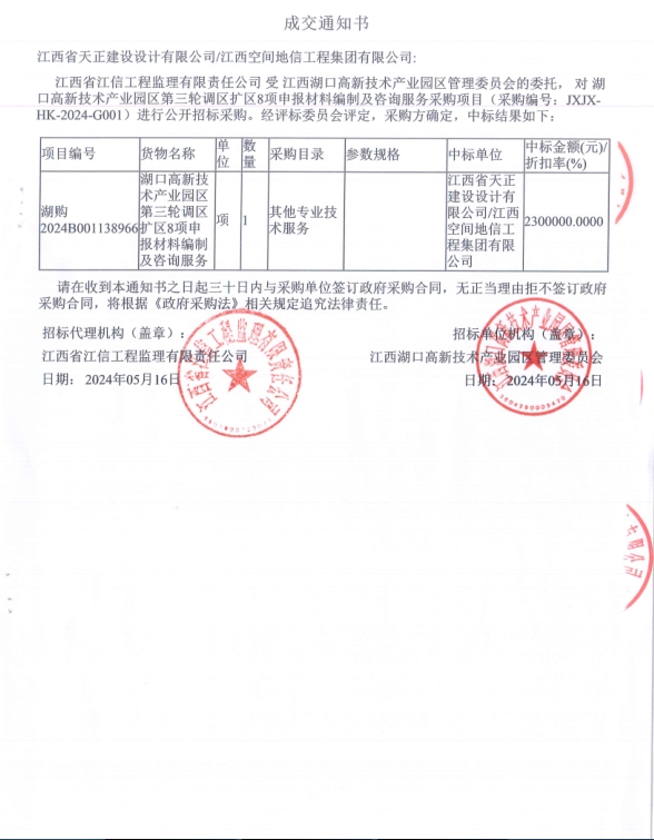 | 湖口高新技术产业园区第三轮调区扩区8项申报材料编制及咨询服务 | 详见响应文件 | 详见响应文件 | 详见响应文件 | 详见响应文件 |