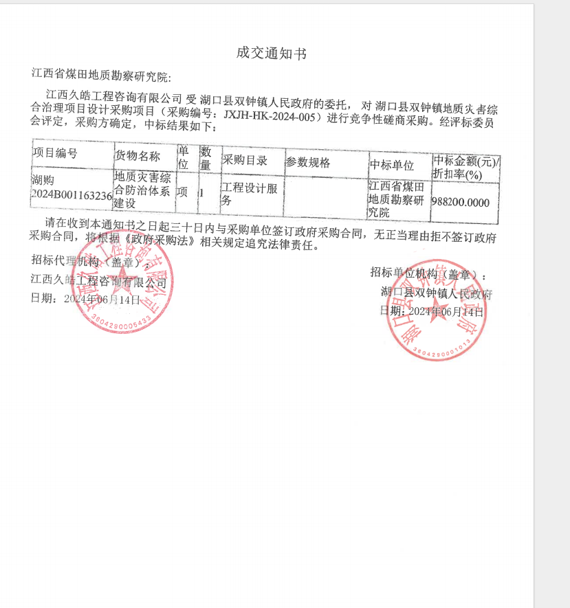 湖口县双钟镇地质灾害综合治理项目设计协议书