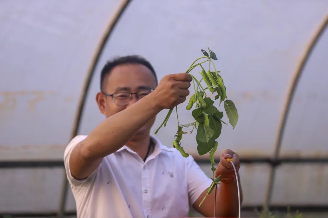 据该村党支部书记、村委会主任石论和介绍,在华南农业大学沈斌斌教授科研团队的指导下,村里2023年利用大棚种植大豆,套养豆丹,种豆养虫两不误,全程不施化肥不打农药,循环种养,绿色发展。收获的大豆加工成豆制品,豆渣用作菌菇棒原料,用过的菌菇棒再粉碎还田,大豆的品质和附加值大大提高。