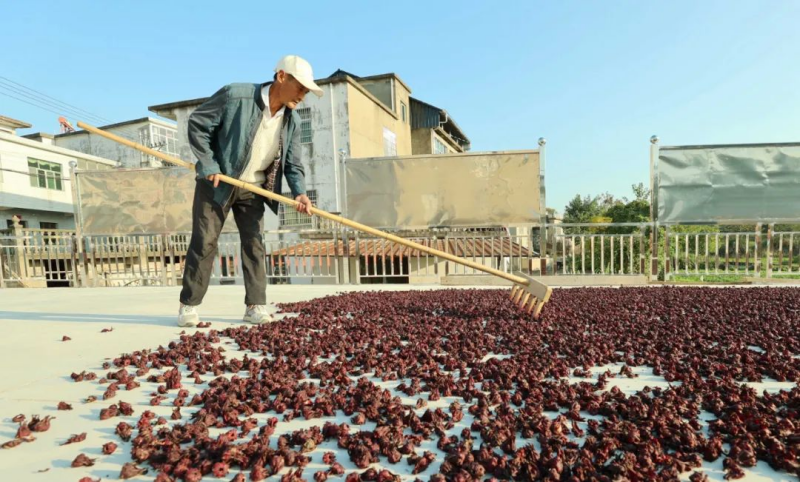 “今年我们村种植了200亩洛神花,预计亩产300公斤以上。目前已采摘4000公斤新鲜花,通过剥离晾晒成干洛神花300公斤。”大垅乡牌骆村“两委”委员骆继兵说,“我们在去年只销售干花的基础上再进行深加工,将新鲜花通过发酵酿造成洛神花白酒,剥离出的花籽加工成食用油,预计可为村集体经济增收50余万元。”