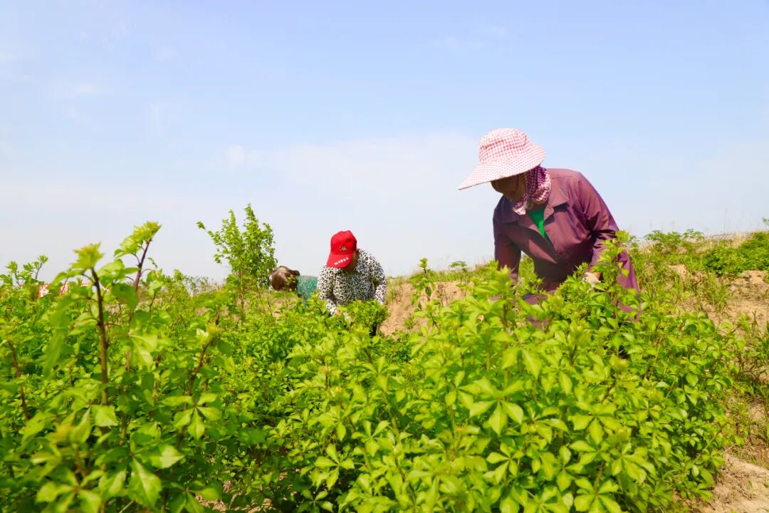 四月的湖口大地,暖风和煦、万物勃发。近日,在湖口县张青乡爱国村中药材产业基地,村民抢抓春时,及时采摘五加皮嫩芽叶领“鲜”上市,供消费者食用。
