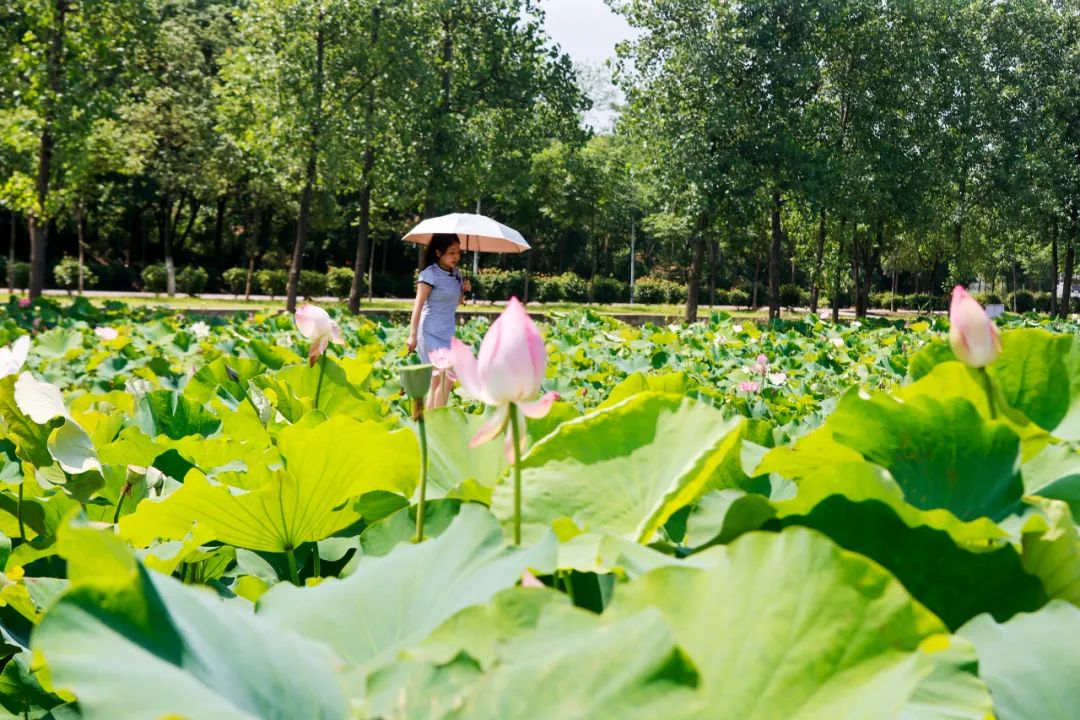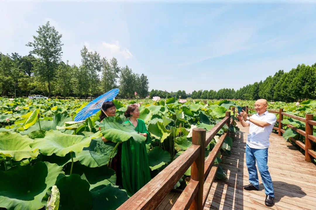 荷塘边游人渐多,笑语欢声不绝。拍照者尤为专注,或俯身贴近水面,或踮脚寻觅角度,纷纷举起手机,将镜头对准姿态万千的荷花,捕捉这份天然之美。“这里荷花真美,高低错落,一看就是自然生长的,拍出来效果特别好!”眼前景象令游客丁女士赞叹不已。