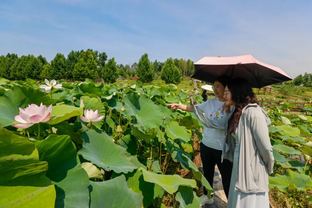 盛夏时节,花期正盛,荷香浮动。这片承载着自然野趣的荷塘,已成为湖口夏日乡村旅游的亮眼名片,吸引着远近游客前来,感受大自然的馈赠。