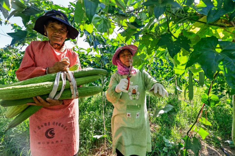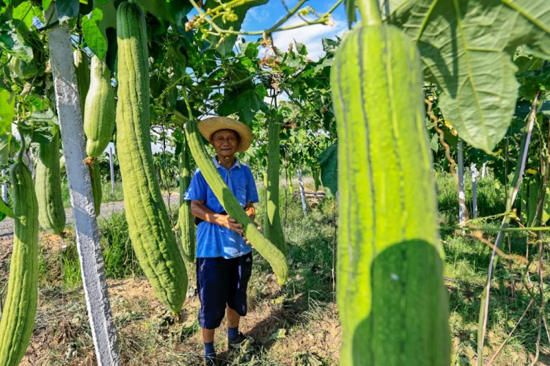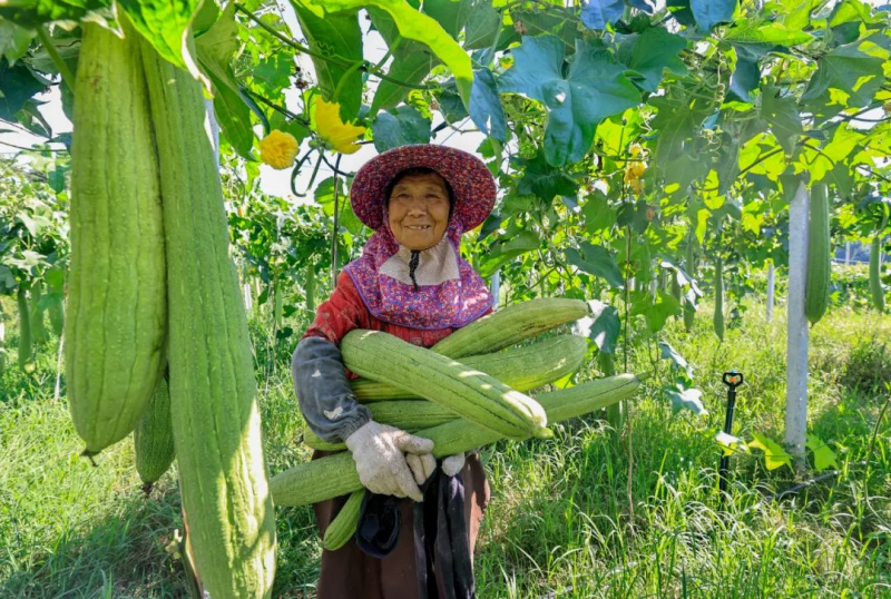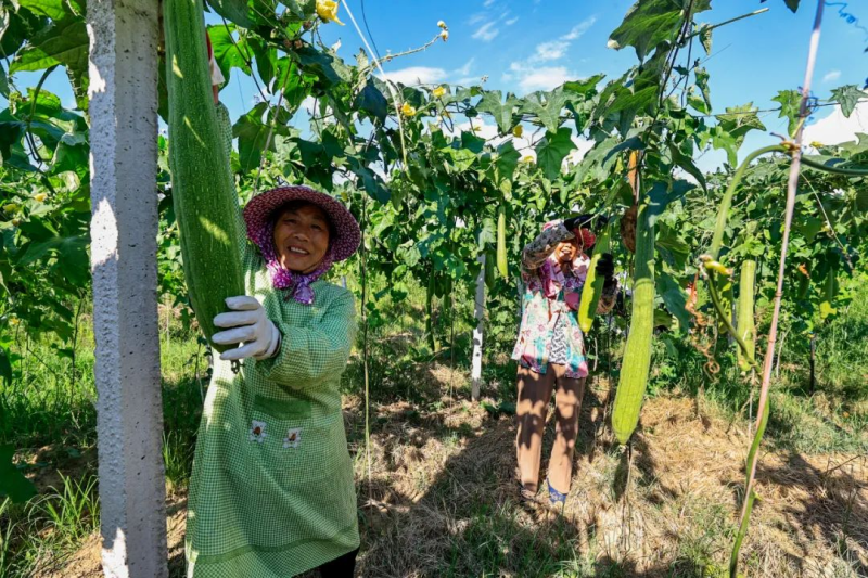 据悉,该品种丝瓜络种植成本相对较低,生命力强、产量高、效益好,采摘后晾晒成丝瓜络,用于制作厨卫清洁、鞋垫等日用品,其余部分还可制成中药材。由于种植规模大,丝瓜络从栽种至采摘,产业基地的用工需求逐渐增多,也为当地村民提供了就近务工的机会。目前,基地已吸收了十多名当地村民就近务工。