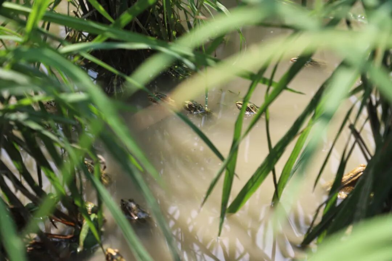 近日,记者走进县城山镇东庄村,一幅生机盎然的田园画卷在眼前铺展,连片稻田四周纱网轻覆,蛙声阵阵回荡在田间,绿油油的水稻长势喜人,一只只青蛙在水稻间灵活穿梭、嬉戏跳跃。这里采用的纯天然、无公害稻蛙共养模式,实现了“一水两用、一田双收”,生态效益与经济效益同步提升。