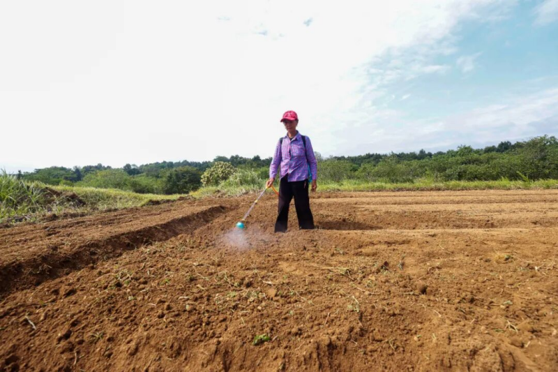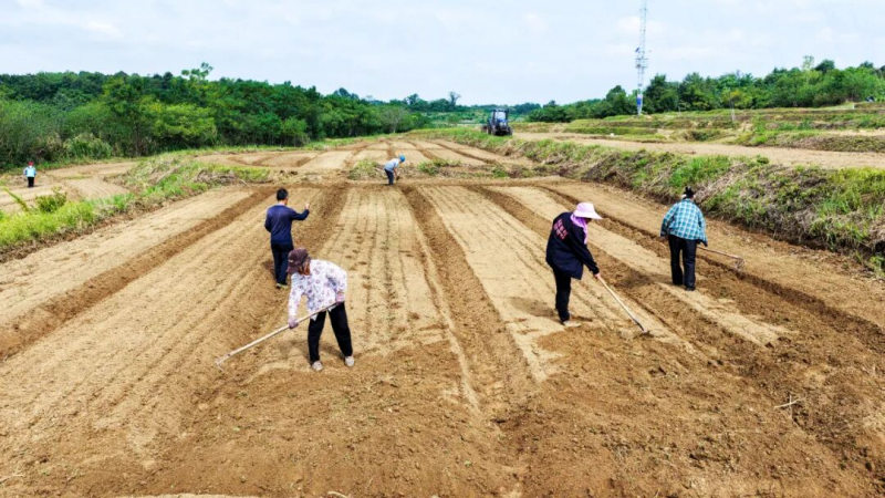 金秋时节,在流芳乡沙港村,大豆完成收割归仓后,一台大型油菜播种机正在进行油菜播种作业。几名村民也紧跟其后,用耙子平整地块,喷洒药剂。