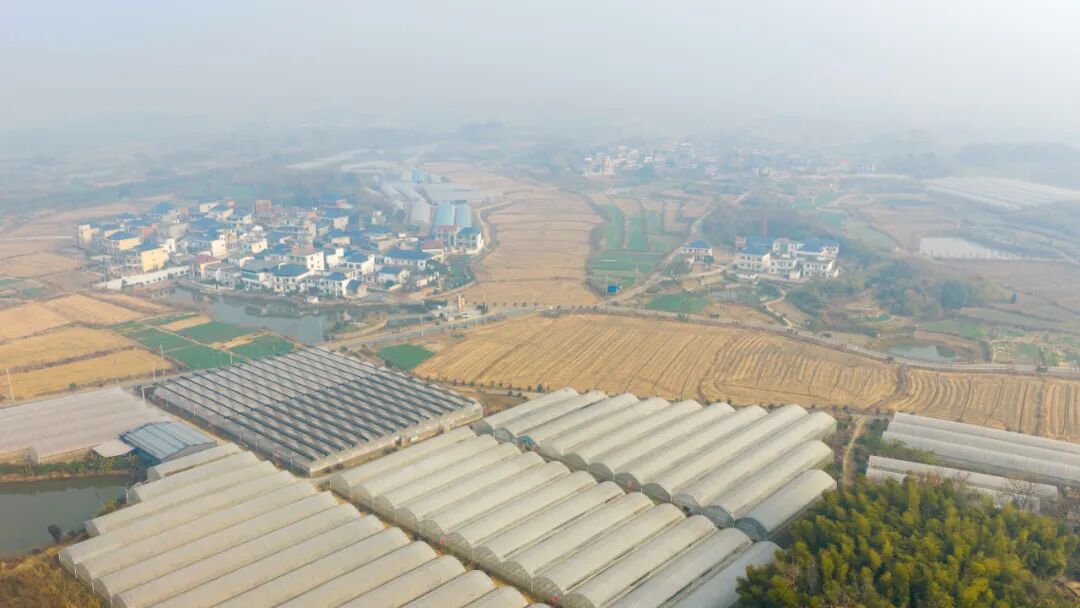 在无人机的俯瞰下,120多亩大棚散布于村落和田垄之间,收割了的稻田已种上油菜。走进大棚,只见滴灌、喷灌、补光、支架网及水肥一体等基础设施配套齐全,里面开满了红白相间的菊花,散发着扑鼻清香。在此务工的附近村民正忙得热乎,不断传出菊秆折断时发出的清脆声。他们有说有笑,有的只顾埋头采折,有的负责中间传递,有的田头捆绑汇总,有的忙着装车运输。特别是负责采折的妇女们,聊到开心处,禁不住随性哼起山歌来。