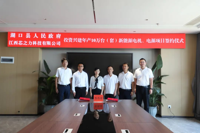 7月19日,湖口县人民政府与江西芯之力科技有限公司举行投资兴建年产10万台(套)新能源电机、电源项目签约仪式。县领导熊莎、沈胤出席签约仪式。