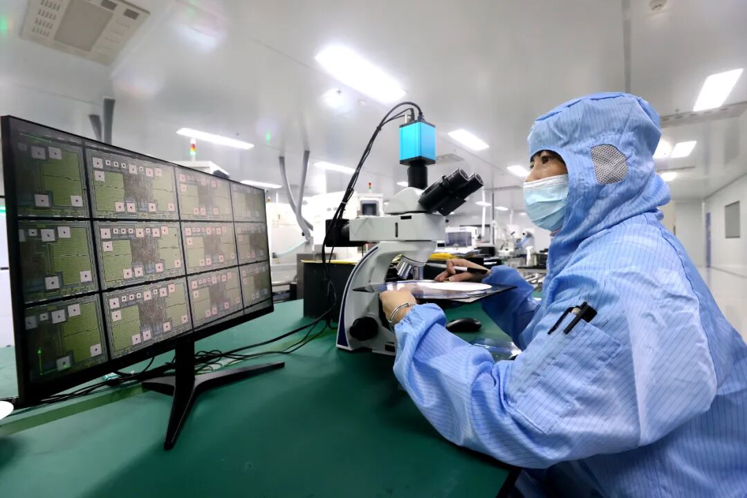 近日,在湖口高新技术产业园区的江西天漪半导体有限公司生产车间内,一台台智能化设备高速运转,工人们在生产线上专心忙碌,赶制芯片订单。
