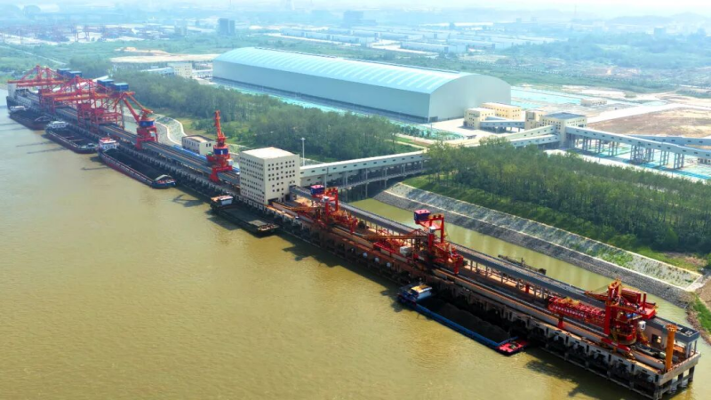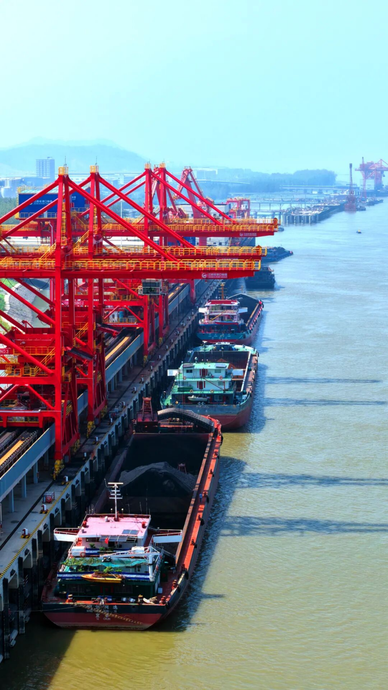 在项目现场,一座崭新的散货装卸码头已巍然屹立于长江岸边。皮带机高速运转,卸船机灵活旋转,将煤炭等散货转运至平台机,再通过一系列流程,高效地卸装至小型船舶,实现了顺畅的“水水中转”。“作为新开通的码头,我们国庆、中秋假期期间不停工,约有20名员工实行三班倒作业,全力保障运营。目前每月‘水水中转’量约5万吨,主要为砂石、煤炭等物资。”码头调度员万浩伦也借此机会送上祝福,“祝大家国庆节、中秋节快乐,祝福祖国繁荣昌盛!”