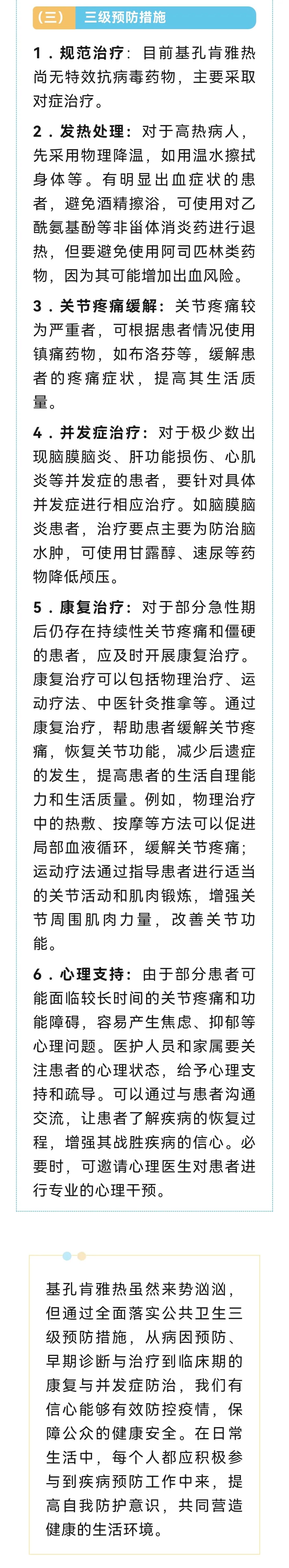 4.及时就医:一旦出现发热、皮疹、关节痛等相关症状立即就医并告知旅行史和蚊虫叮咬史,以便医生能够及时准确地诊断和治疗。