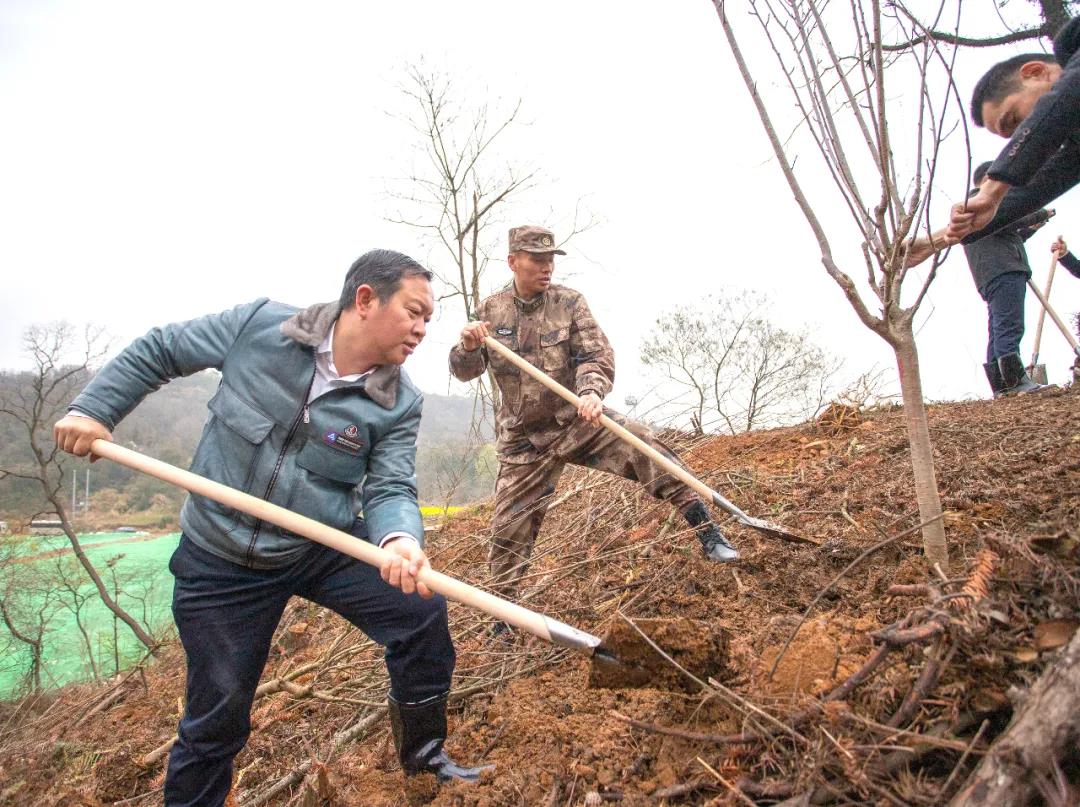 草长莺飞,大地回春。今年3月12日是我国第43个植树节。县委书记江训开,县委副书记、县长曾宝柱,县委副书记张南,县人大常委会主任阮洋,县政协主席杨小林率领县四大家领导及县委各部门、县政府组成部门、县直和驻县各单位负责同志来到学士路北侧山坡上开展植树节义务植树活动,为生态湖口再添一片新绿。