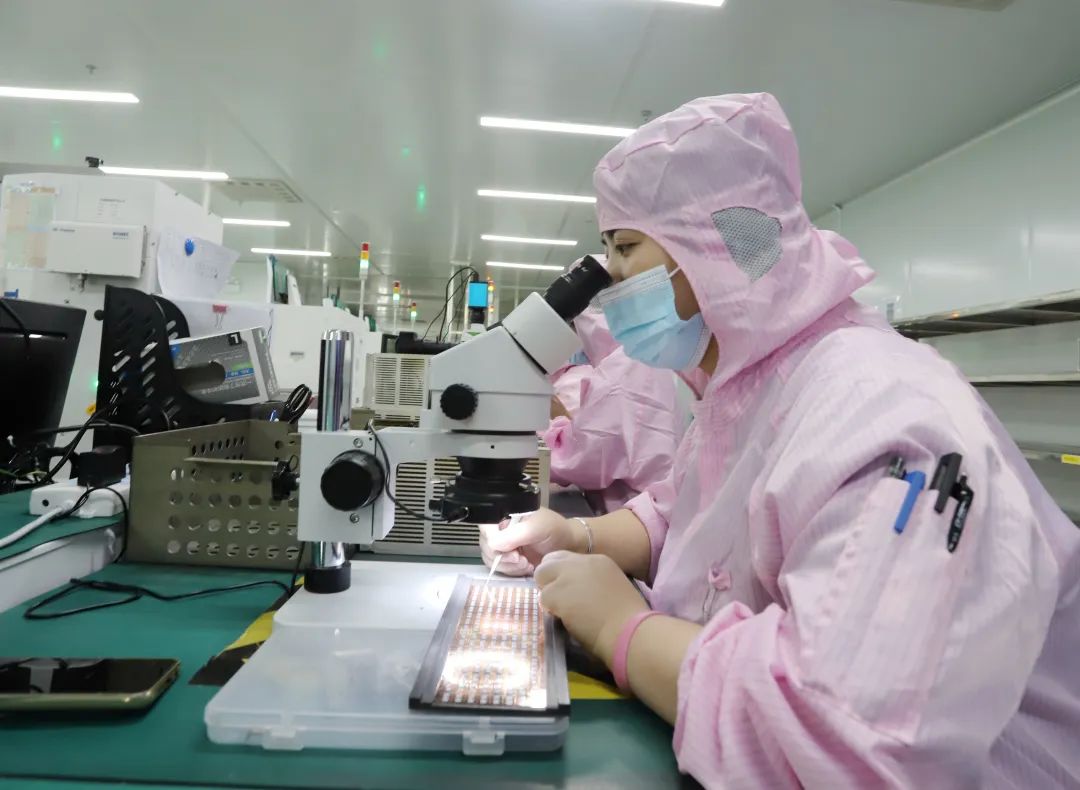 江西睿芯科技有限公司经理袁小昕介绍说,该公司依托企业自主研发团队的优势,已获发明专利和实用新型专利14项。为提高产品核心竞争力,以“设备换芯、生产换线、机器换人”为突破口,加快实现智能化、数字化转型升级,于2021年8月引进多台全自动螺丝机,建成室内外全自动组装线,每台设备可节省3—5名人工,使企业生产效率从87%提高到95%,良品率从97.5%提高到99%,自动化覆盖率达90%以上。同步加大技术研发投入,建立产品研发实验室,再建设4条SMT全自动生产线,为国内外一线龙头企业开展OEM、ODM业务。