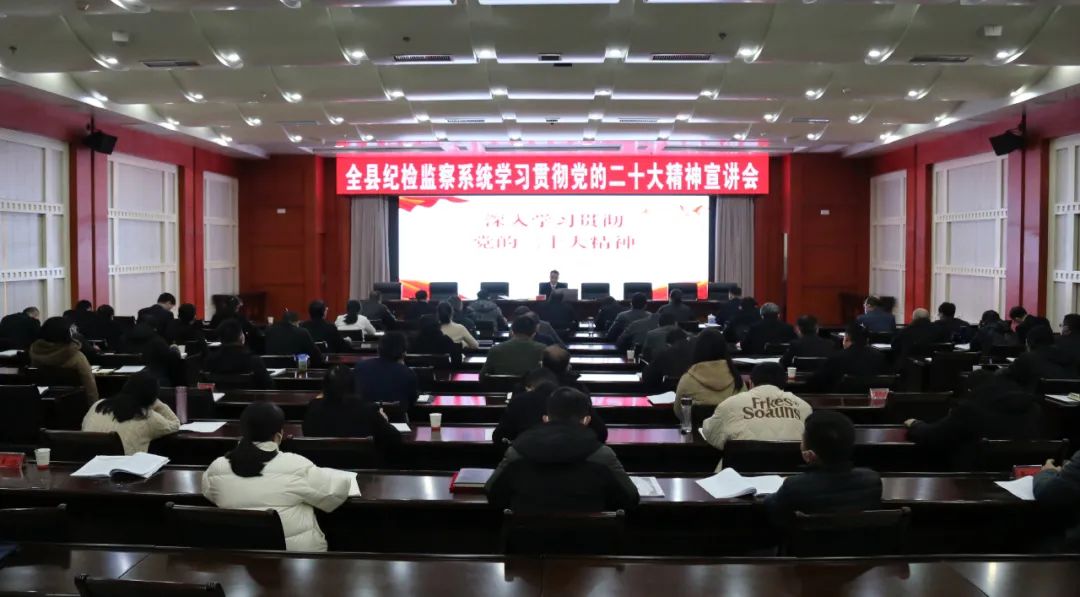 1月6日,全县纪检监察系统学习贯彻党的二十大精神宣讲会召开,县委常委、纪委书记、监委主任袁思义作专题宣讲。各乡镇纪委书记、副书记,县纪委监委机关、派驻机构、县委巡察机构全体干部参加会议。