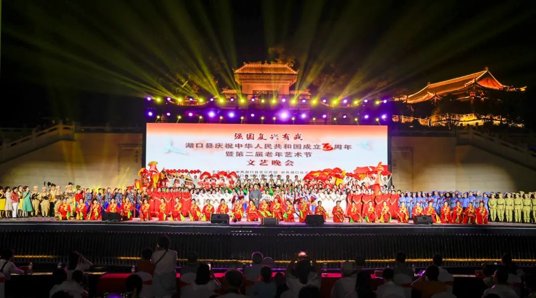 载歌载舞,欢度国庆。为庆祝新中国成立75周年华诞,充分展示湖口老年人积极向上的精神风貌,丰富老年人精神文化生活,9月30日晚,湖口县庆祝中华人民共和国成立75周年暨第二届老年艺术节文艺晚会在石钟山广场举行。市老年大学副校长张延芳、欧阳文成、肖江,县委副书记樊珈妤,县领导文珍珍、王利军、卢伟俊、梅慧菊、沈昭、李宏川等出席活动,县老科协名誉会长方志明,县老年大学名誉校长傅金林,县老年大学校长欧阳舲参加活动。