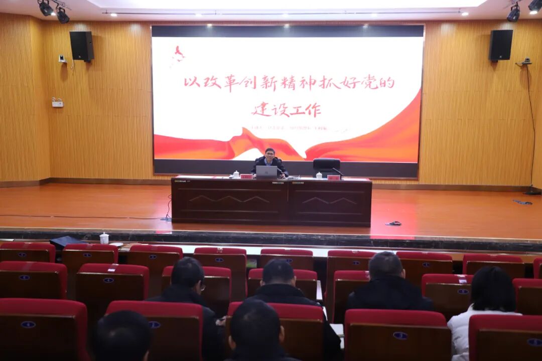 县委常委、组织部部长王利军以《以改革创新精神抓好党的建设工作》为主题进行授课。