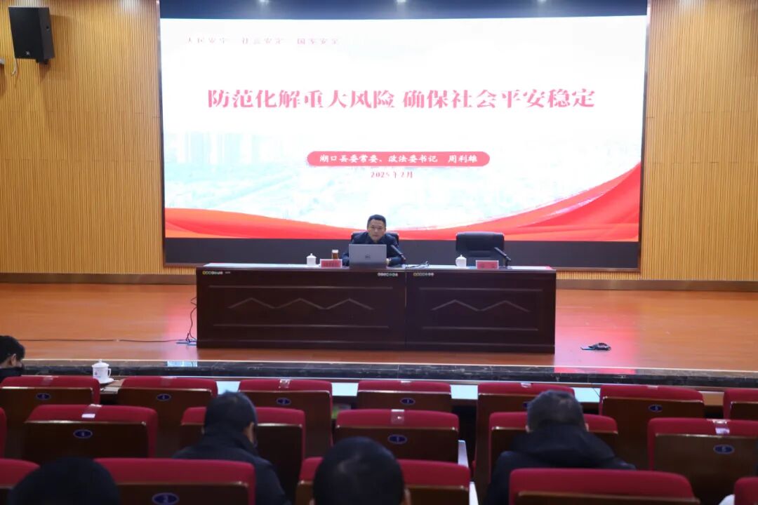 县委常委、政法委书记周利雄以《防范化解重大风险确保社会平安稳定》为主题进行授课。