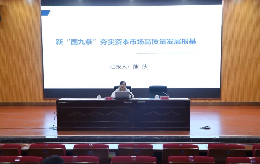 县委常委、副县长、武山镇党委书记熊莎以《新“国九条”对资本市场的影响》为主题进行授课。