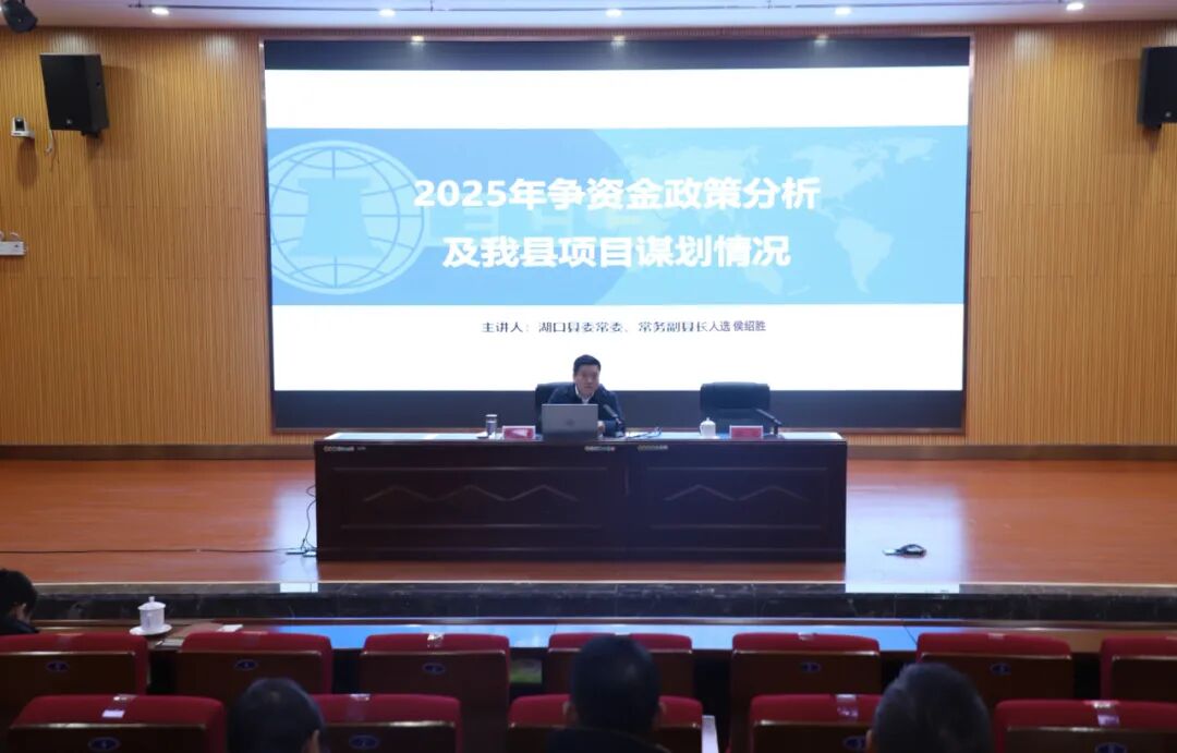 县委常委、常务副县长人选侯绍胜以《2025年争资金政策分析及我县项目谋划情况》为主题进行授课。