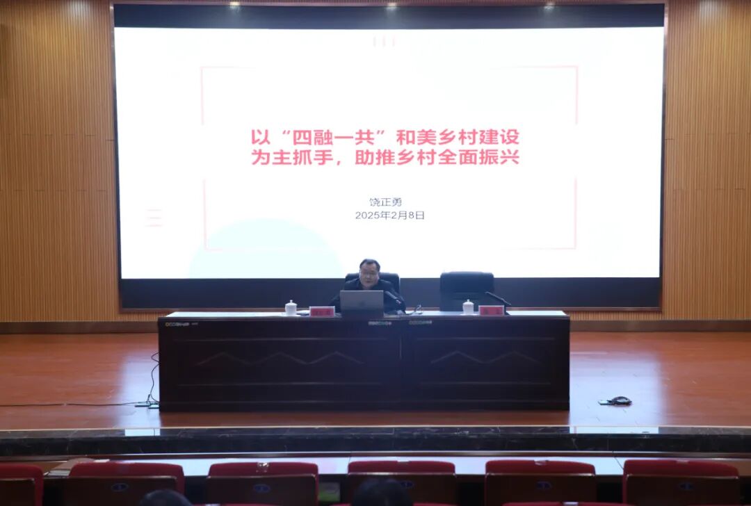 副县长饶正勇以《以“四融一共”和美乡村建设为主抓手,助推乡村全面振兴》为主题进行授课。