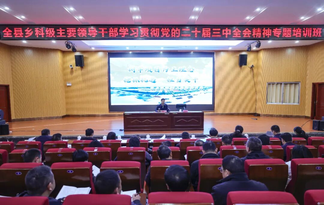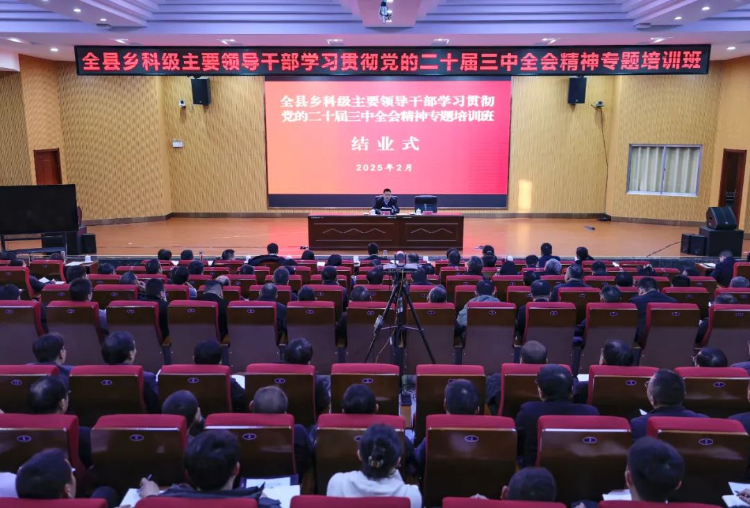 2月9日,全县乡科级主要领导干部学习贯彻党的二十届三中全会精神专题培训班在县委党校报告厅结业。县委书记曾宝柱出席结业式并讲话。、县长陈洋,县委副书记樊珈妤,县人大常委会主任史文,县政协主席梅媚等县四套班子在家领导,县法检“两长”出席活动。