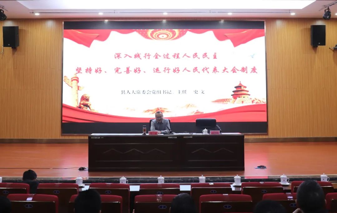 县人大常委会主任史文以《深入践行全过程人民民主,坚持好、完善好、运行好人民代表大会制度》为主题进行授课。