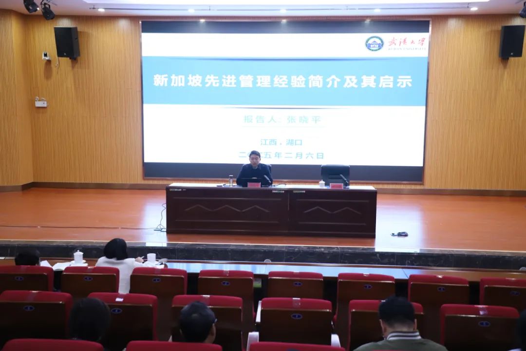 武汉大学教授、博士生导师、人事部副部长张晓平以《新加坡先进管理经验简介及其启示》为主题进行授课。