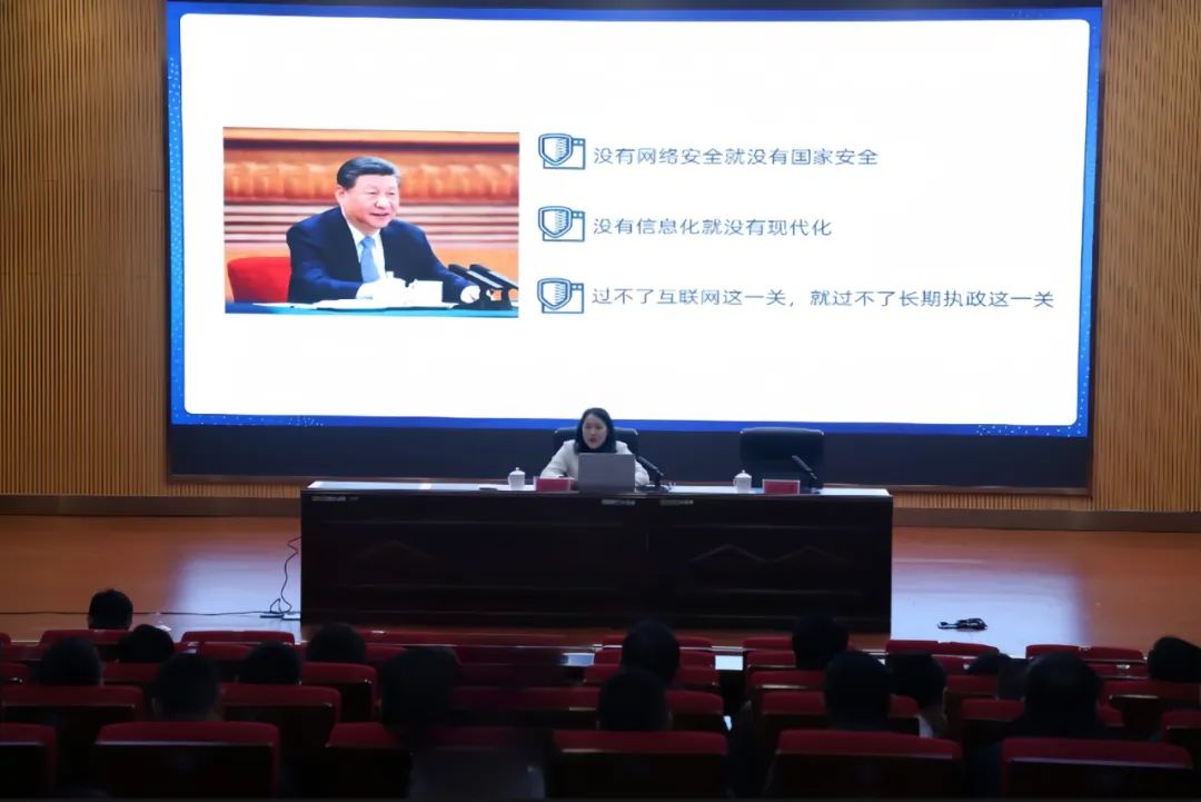 县委常委、宣传部部长文珍珍以《主动适应新时代信息化要求,努力把互联网这个最大变量变成事业发展的最大增量》为主题进行授课。