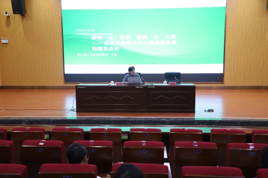 副县长沈昭以《解锁“心”知识,赋能“心”力量——浅谈学生心理健康教育问题及应对》为主题进行授课。