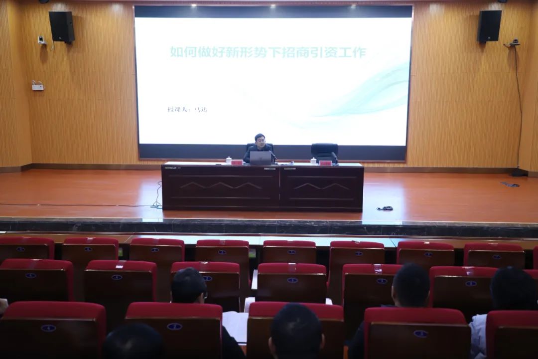 副县长马达以《如何做好新形势下招商引资工作》为主题进行授课。