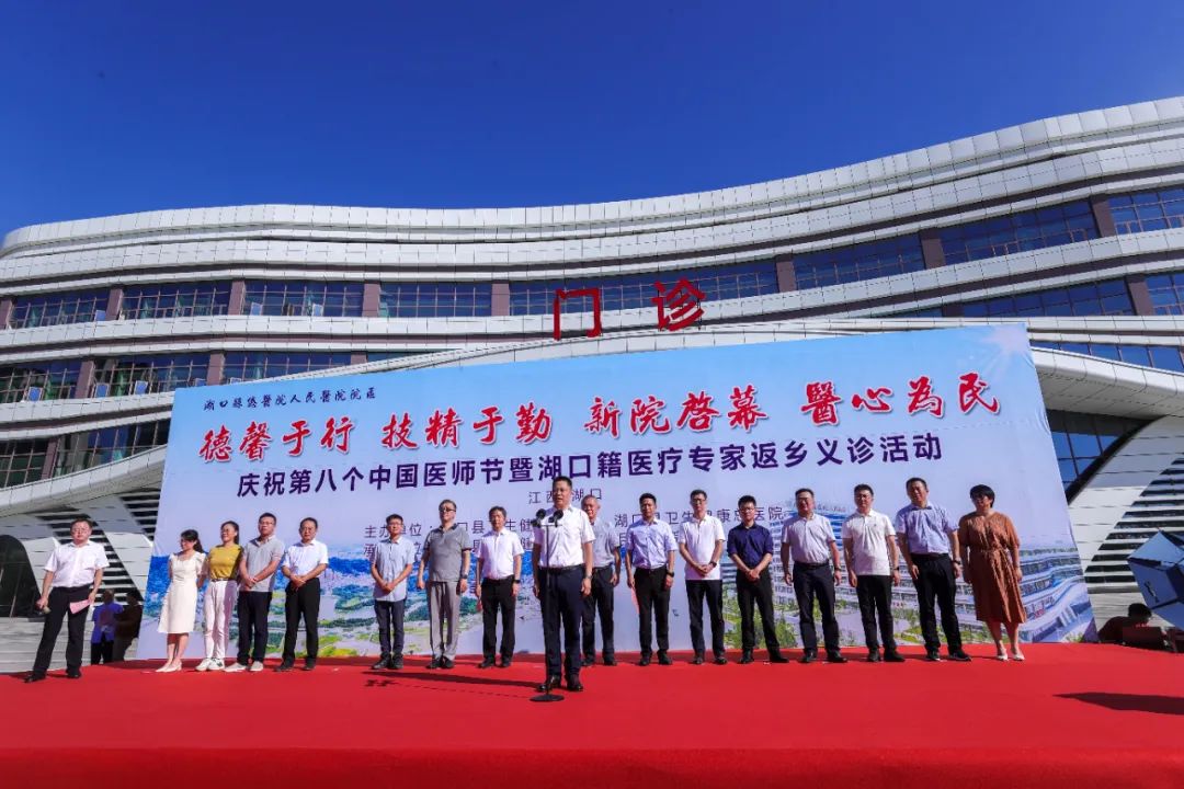 在第八个中国医师节来临之际,湖口县卫生健康事业迎来双重盛事:承载希望的湖口县卫生健康总医院人民医院院区全面投入使用,一场以乡情为纽带、汇聚四方名医的大型义诊活动在此温情启幕。8月16日,湖口县卫生健康总医院邀请在北京、上海、杭州、南昌、九江等地工作的湖口籍医学翘楚荣归故里,以拳拳赤子心和高超医术,将前沿诊疗技术与优质资源倾注家乡沃土。县委书记曾宝柱,县委副书记、县长陈洋出席启动仪式。